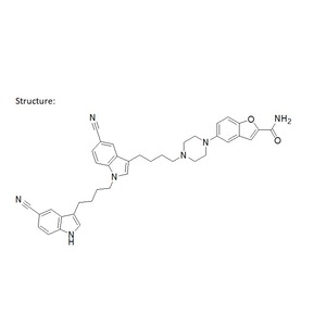 Chemical Name : 5-(4-(4-(5-cyano-1-(4-(5-cyano-1H-indol-3-yl)butyl)-1H-indol-3-yl)butyl)piperazin-1-yl)benzofuran-2-carboxamide